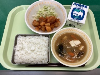 【今日の給食】10月 3日(金) 公開日 2025/10/07 更新日 2025/10/03 給食 【まごわやさしい献立】ごはん牛乳たらのノルウェー風ごまキャベツ豆腐とわかめのみそ汁『まごわやさしい』の食材をそろえると、栄養バランスが整いやすくなります。