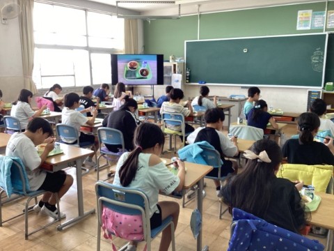 担任の先生から食器の並べ方、お箸の向きのお手本を