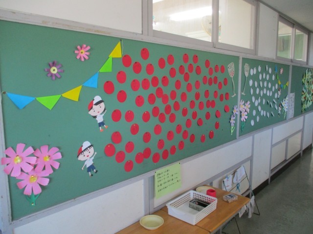 みんなの意気込み、メッセージが廊下に飾ってあります! がんばれ、紅組!白組!