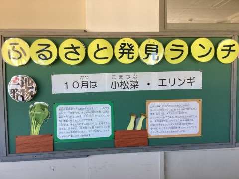 今月のふるさと発見ランチ(SideA) 公開日 2025/10/16 更新日 2025/10/15 給食 今月のふるさと発見ランチは、『桑名産の小松菜』と『三重県産のエリンギ』を提供します。毎月食材の情報を掲示でお知らせしています。