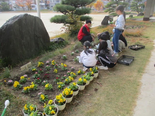 人権の花を植えました 公開日 2025/12/02 更新日 2025/12/02 学校生活のようす 命の大切を学ぶ機会として、全校で「人権の花」に取り組んでいます。パンジーやビオラを植え、花壇が色鮮やかになりました。