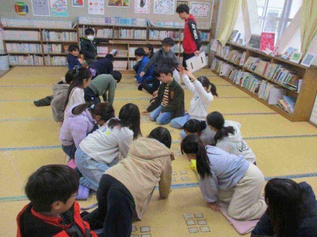 4年生詩カルタに挑戦! 公開日 2026/02/10 更新日 2026/02/10 学校生活のようす 桑名の指定文化財である詩カルタに挑戦しました。1800年代に桑名に伝えられた歴史あるカルタです。札には難しい漢字ばかり書かれていましたが、謎解きのようにみんな張り切って取り合っていました。