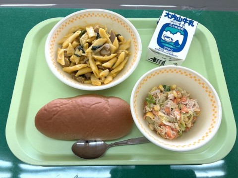 【今日の給食】 3月10日(火) 公開日 2026/03/16 更新日 2026/03/13 給食 【ふるさと発見ランチ:かぼちゃペースト】小型黒糖パン牛乳かぼちゃクリームペンネチキンサラダ三重県桑名市産のかぼちゃで作った『かぼちゃペースト』を使用しました。