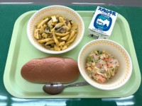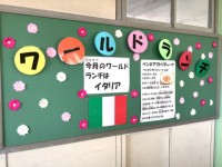 今月のワールドランチは、イタリアです。献立は、小型パン牛乳ペンネアマトリチャーナ...
