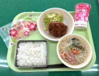【卒業 お祝い献立】ごはん発酵乳手作りヒレカツごまキャベツにゅうめんお祝いデザー...