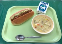 【ワールドランチ:アメリカ】パン牛乳スラッピージョーゆでキャベツコーンクリームス...