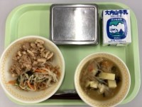 【わかめごはん 牛乳 ぶりのしょうが煮 ごま和え そうへい汁】 僧兵汁とは、いの...