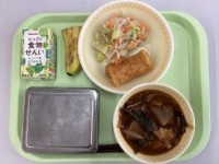 【ごはん 牛乳 ゼリーフライ チーズ入りブロッコリーサラダ かきたま汁】今日のゼ...
