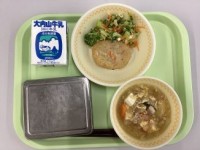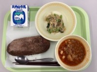 【小型黒糖パン 牛乳 みそラーメン しゅうまい 大根サラダ】大根 は冬 の寒 い...