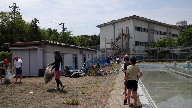 5年生はプールの外回りを、6年生はプール内をきれいに掃除してくれました。子どもたちは「自分たちでプールをきれいにする!」という思いを持って取り組んでいるので、職員から注意をされることはあまりありませんでした。えらいもんだなと思います。