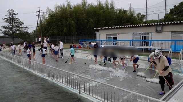 6月2日(月)に、6月9日のプール開きに向けて、5・6年生がプールを掃除してくれました。