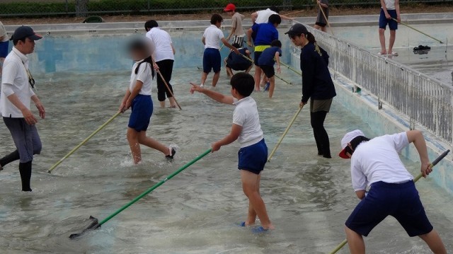 また、本年度より始まったPTA活動のエントリー制により、今回のプール掃除にエントリーしていただいた保護者の皆様にもたくさん来ていただいて、子どもたちと一緒になってプール掃除をしていただきました。ありがとうございました。