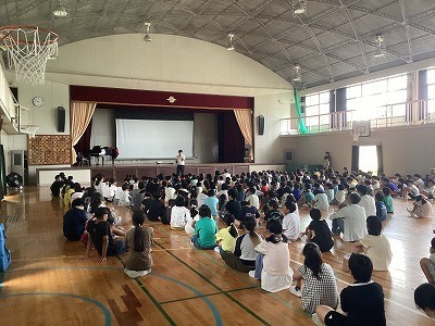 「交通安全」「熱中症対策」「規則正しい生活」について話をしました。今年も大変暑い夏です。安全に健康に夏休みを楽しみ、9月1日に元気に再会できることを楽しみにしています。