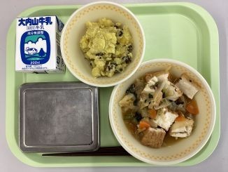 【ごはん 牛乳 厚揚げの中華炒め おさつあずき】