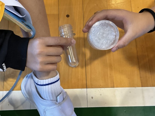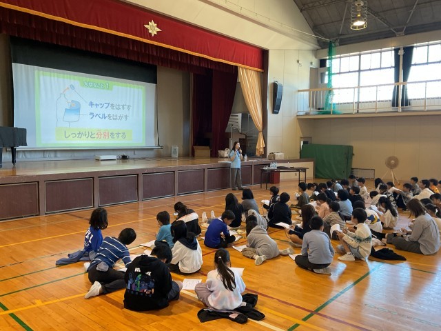 飲み終わったペットボトルが、どのようにしてリサイクルされて新しいペットボトルに変わるのか、資源を有効活用するために自分たちにできることは何なのかを学びました。