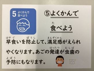給食週間五日目は、「食育ピクトグラム」の「よくかんで食べよう」についてです。