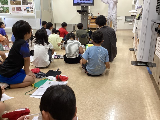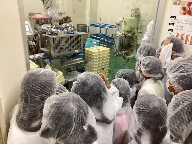 安心・安全な商品を届けるために、手洗いや爪の管理、手袋の着用、アルコール消毒など、細かな衛生管理が徹底されていることを教えていただきました。特に「手袋は自分の手を守るためではなく、食べ物を守るために使う」というお話には、多くの子どもが深くうなずいていました。食の安全を支える丁寧な仕事の大切さを感じる貴重な時間となりました。