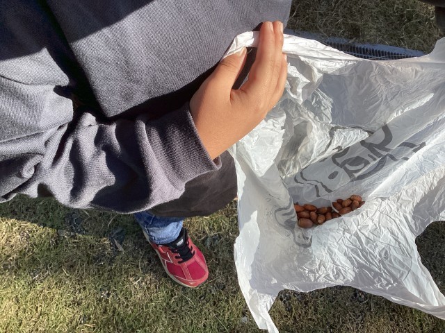 公園では、子どもたちは「どんぐり見つけた!」「こんなに大きいのあったよ!」と声を弾ませながら、仲間と協力して夢中で秋の宝探しを楽しんでいました。袋に集めたどんぐりを見せてくれる笑顔が、とても印象的でした。