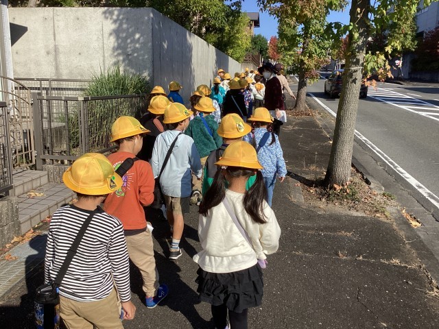公園までの道のりでは、担任の先生の話をしっかり聞き、交通ルールを守って安全に歩くことができました。横断歩道で手を挙げて渡る姿も、とても立派でした。