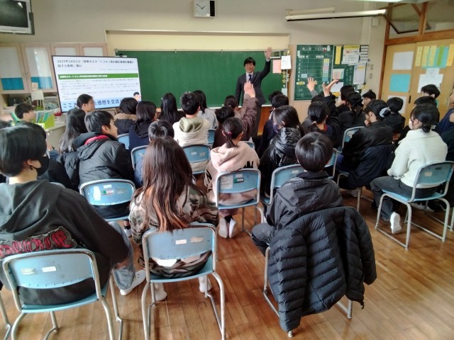 講演では、写真や言葉、動画など、何気なく発信した情報が相手を傷つけたり、個人が特定されたりする危険性について触れ、「一度発信された情報は簡単には戻らないこと」や「見ている側、受け取る側にも責任があること」など、子どもたち一人一人が自分事として考えることの大切さを学びました。