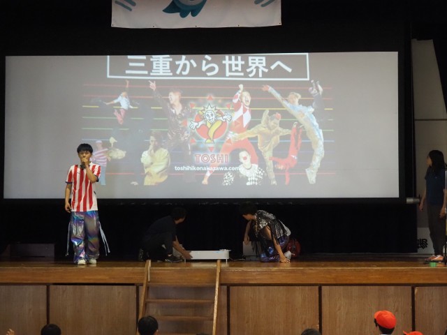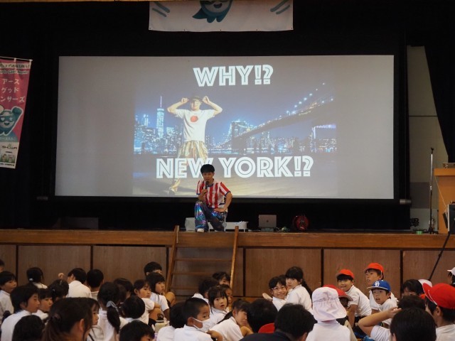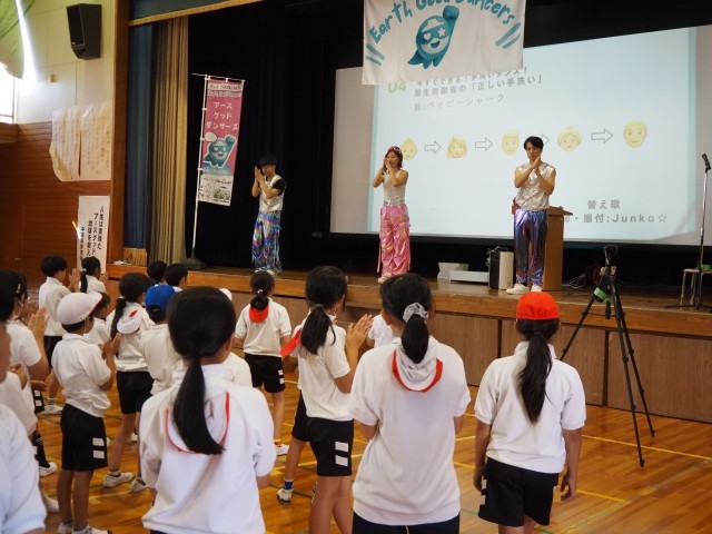 10/6(月)アースグッドダンサーズ【中澤利彦さん(Toshi)、蛇澤多計彦さん(Takechan)、蛇澤純子さん(Junko)】というダンスチームの方々が来校され、「夢や挑戦」についての出前授業をしてくださいました。大阪関西万博でのダンスパフォーマンスを前日の22時に終えた後、長島北部小学校まで駆けつけてくださいました。前半は「キミもその一歩でセカイをかえろ」後半は「人生は実験だ!アースグッドで地球を救え」のテーマでダンスワークショップをしてくださいました。中澤さんからは、英語もあまりわからない中、単身でニューヨークに渡りアポロシアターのコンテストで優勝するまでのこと、そして現在は、ニューヨークを拠点に世界中を旅してダンスを通した活動を展開されていることを熱く語っていただきました。蛇澤多計彦さん,純子さんからはYoutuberとしての活動や世界各地で運動会を開いたりニューヨークで公演されたりしたお話をSDGsとも絡めてユニークなダンスで表現していただきました。