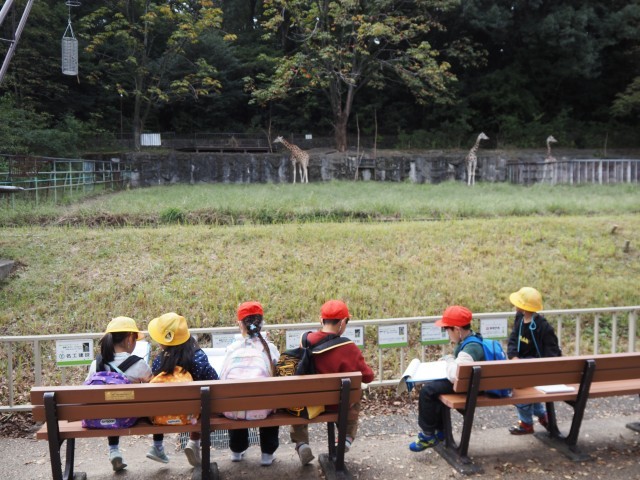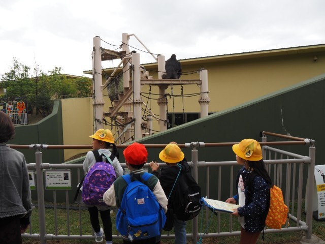 10月24日(金)雨も心配されましたが、曇り空のもと、1,2年生の校外学習を東山動植物園で行いました。事前に1,2年生で編成された班で動物見学の計画を立て、地図を手がかりに多くの動物を観察しました。途中、班で協力してクイズにも答えながら、楽しんでまわることができました。人気の動物たちのまわりには平日とはいえ多くの観光客の姿がありましたね。同じように校外学習で訪れている他校の児童も多く見られました。長島を離れ、班での協力、生き物の観察とたくさんのことを学ぶことができた校外学習でした。保護者の皆様、前日準備や当日の弁当づくりなどお世話になりました。ありがとうございました。