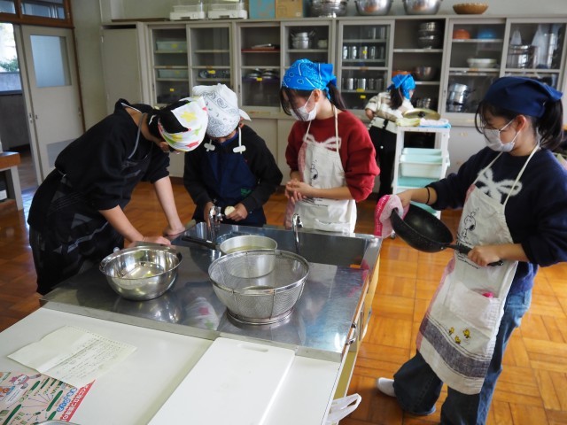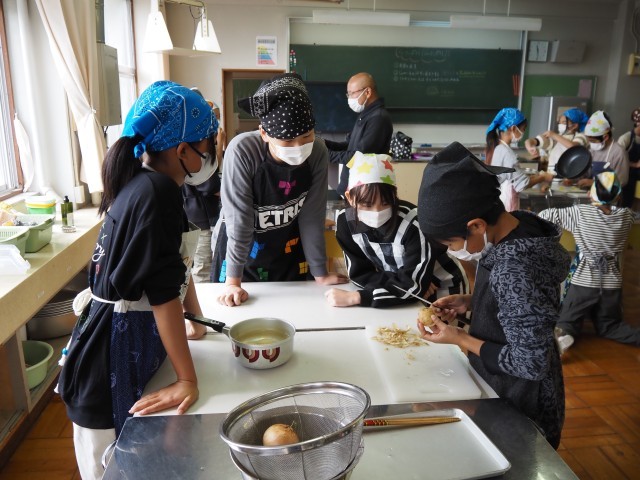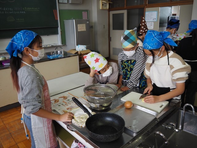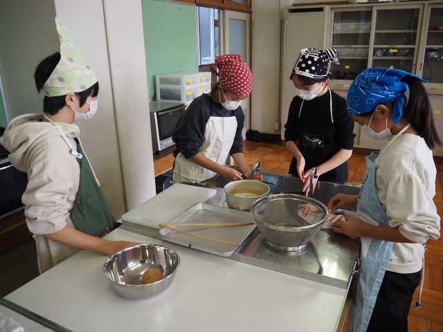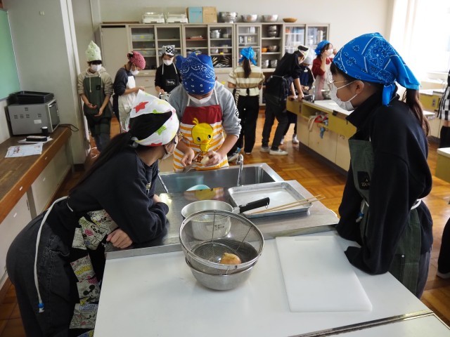 11月19日(水)、6年生家庭科で調理実習を行いました。ベーコンとじゃがいもをつかったジャーマンポテトをつくりました。今回の授業の中で包丁で「じゃがいもの皮をむく」作業の難しさを体験し「どうすればうまく包丁を使えるか」といったことを考え工夫して取り組むことができました。調理から後片付け、給食準備まで、仲間と協力して進めることができました。今後の生活の中でこの経験を生かしてくださいね。