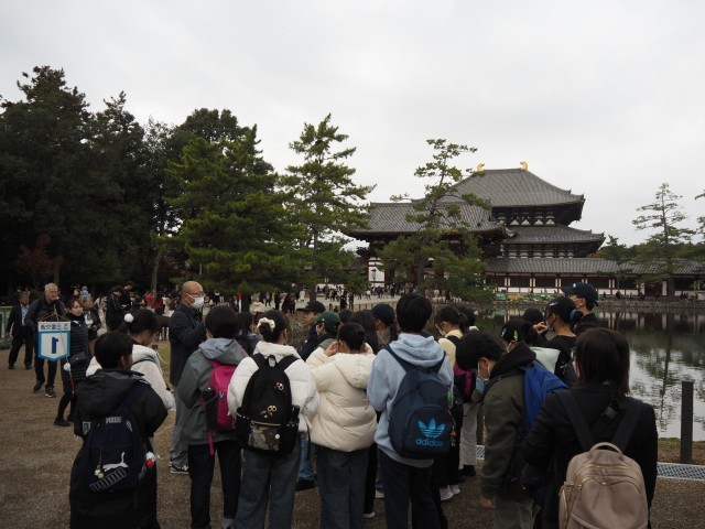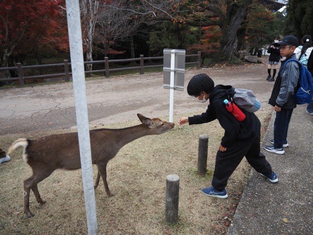 11月26日(水)~27日(木)に6年生が修学旅行に出かけました。二日間とも天候に恵まれ、奈良と京都を舞台に快適に活動できました。この時期の奈良、京都は紅葉が素晴らしく、至るところで見事な自然のコントラストに包まれていました。外国人観光客も多く、どこも大混雑でしたね。二日間を通して、大きく体調を崩す子も、怪我をする子もなく無事帰ってこられたのは本当によかったです。ガイドさんの言葉に耳を傾け、見学地では熱心にメモをとる姿が印象的でした。