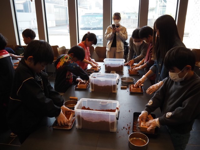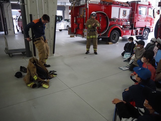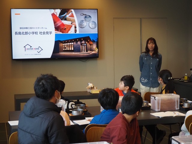 12月3日(水)3年生が桑名市内で社会見学を行いました。見学先は「寺町商店街での三八市」「桑名市消防署」「CASTER HOME」でした。寺町商店街の三八市ではボランティアとして保護者,地域の方にサポートいただきました。予算内で買い物をしながらインタビューも行い、桑名市伝統の三八市の雰囲気や地域の方の熱量を感じることができました。次に訪れた桑名市消防署は大山田に移転した直後で建物が新しく、郵便局など様々な機関と共存した複合施設でした。実際に水を出しての消火訓練も見せていただきました。仮眠室などの施設も見学させていただき、消防署職員の方々がどのように私たちの町を守ってくださっているのか詳しく知ることができました。九華公園で弁当を食べた後、最後の見学地であるCASTER HOMEさんに行きました。CASTER HOMEさんでは鋳物製造を製作体験を通して学ばせていただきました。マンホールなど実際にCASTER HOMEさんで製造しているものを見せていただき、鉄は1000度をこえて溶けることなど、かなりの高温の中で加工している現場の話を子どもたちは興味深く聞き入っていました。最後にすずを溶かし記念品を制作させていただきました。すずの溶解度は300度ということで目の前で300度で溶けながら形が変わるすずを見ながら制作でき、桑名市が誇る鋳物鋳造の素晴らしさと奥深さを実感することができました。どの見学地からも「桑名市ならでは」といったことを多く学ぶことができました。早朝よりお弁当を準備していただきました保護者の皆様、ありがとうございました。