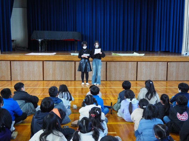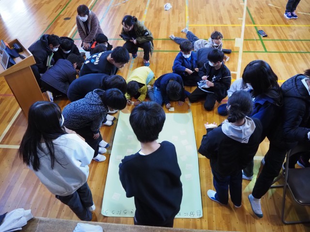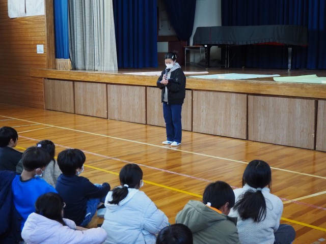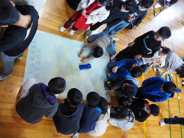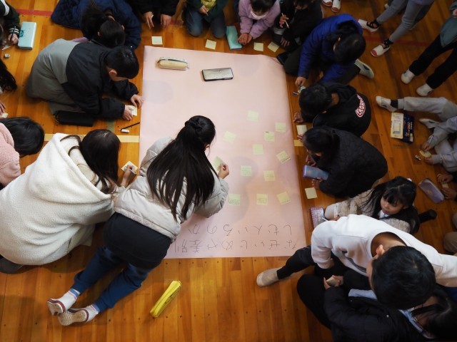 12月10日(水)、全校児童が集まっての人権集会を行いました。まず最初に2日(火)に行われた「輪中ブロック人権フォーラム」(長島町・木曽岬町の各小学校から6年生の代表者が参加)に参加した北部小6年生代表児童二名から環流報告をしてもらいました。他校の児童と積極的に議論した中で、大事なこととして「相手のことをよく知ること」「最初から否定せず受け止めること」など、この日に学んだことを全校児童に伝えてもらいました。その後、6年生から人権をより深く考えるために三つのテーマが示され、このテーマごとに付箋で自分の意見をはっていく形で全学年が参加する集会となりました。児童のみなさん全員が積極的に書き込みはる姿であふれ、自分事として人権を考えることができていましたね。おりしもこの日は「世界人権デー」でもありました。道徳の授業や日常的に様々な問題を解決した時、「あの子」から学んだ時間など、これまで人権を考える機会はたくさんあったことと思います。ぜひ今日の取り組みとつなげながら、人権のことを「自分ごと」にするきっかけとなればと思います。人権フォーラム代表のみなさん含め、6年生のみなさん、ありがとうございました。