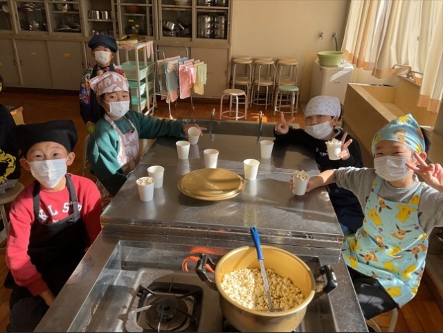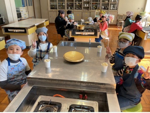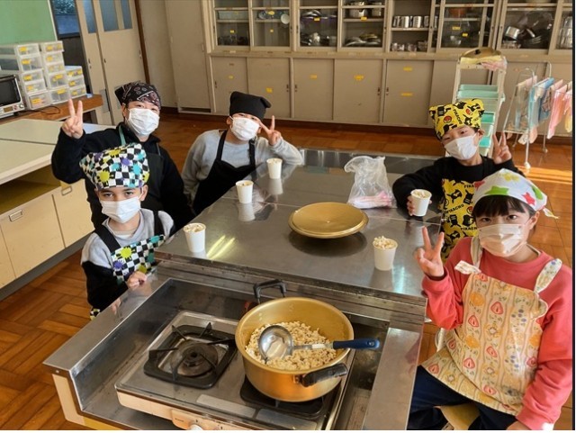 12月22日、5年生に引き続き、3年生も「お楽しみ会」としてポップコーンをつくりました。原料のとうもろこしは北部小学校区の方からいただきました。クラスで協力して調理しおいしくいただくことができました。二学期の締めくくりをわきあいあいと終えることができてよかったです。とうもろこしをわけていただいた地域の皆さん、ありがとうございました。