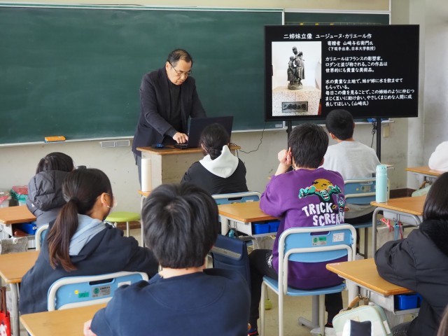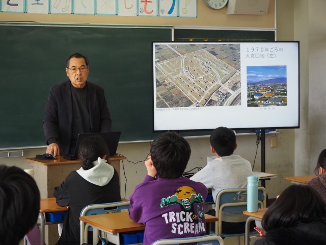 2月16日(月)「地域先生プジェクト~先輩から学ぼう~」として卒業を控えた6年生のために、北部地区在住の黒田昌志先生より「長島町の歴史、北部小学校の歴史」について詳しく教えていただきました。北部小学校が最初、下坂手にあり、名前が「楠小学校」だったこと、幼稚園が現在の体育倉庫の建物だったことなど、大変勉強になる内容でした。貴重な昔の写真の他に、伊勢湾台風の被害など具体的な数字も示して頂きながら教えて頂きました。長島町も北部小も日本の様々な歴史の中で今日まで歩んできたのだと実感しました。この学びを中学校以降に出会う様々な国と地域の学習に生かしていきましょうね。黒田先生、ありがとうございました。