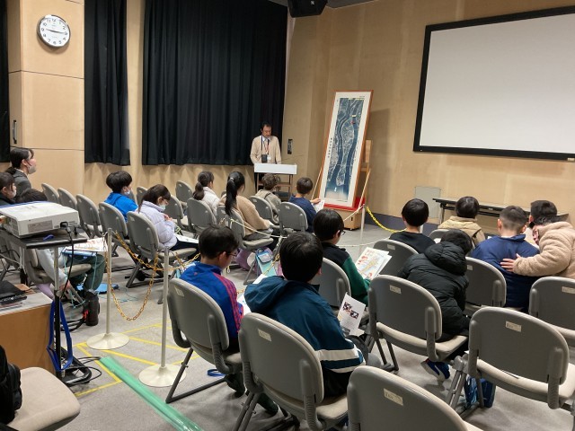 2月25日水曜日、北部小学校区の「輪中の郷」へ3年生が社会見学に行きました。あいにくの雨天ではありましたが学校から徒歩で往復しました。輪中というこの地域の地形的な特色や歴史的なことも含め貴重な展示を見学し、館長の方から「輪中地域のくらし」という題目での講義を受け動画も視聴するなど、地域学習を深めることができました。