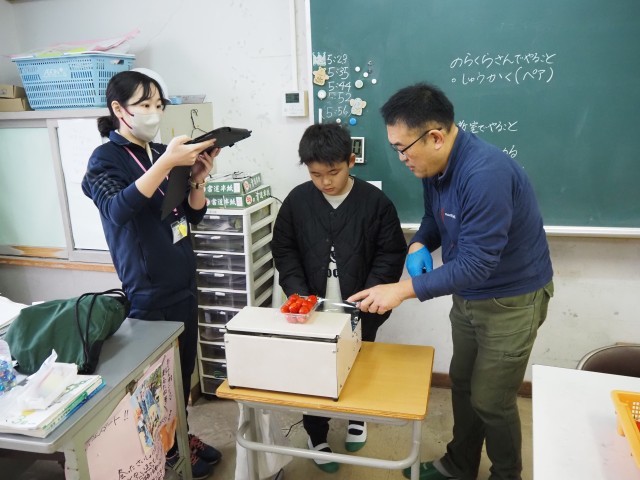 いちご栽培学習(収穫→パック詰め)(3年生)