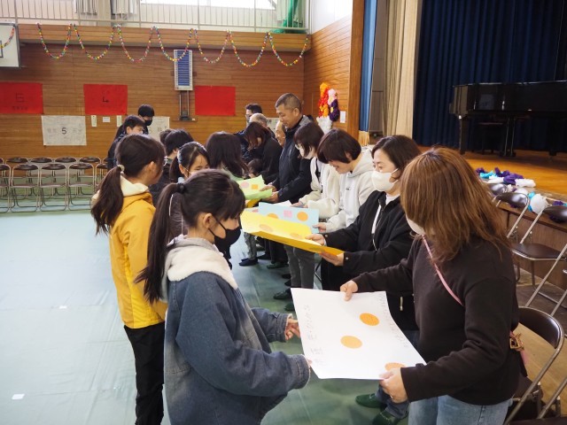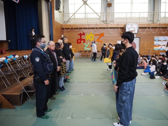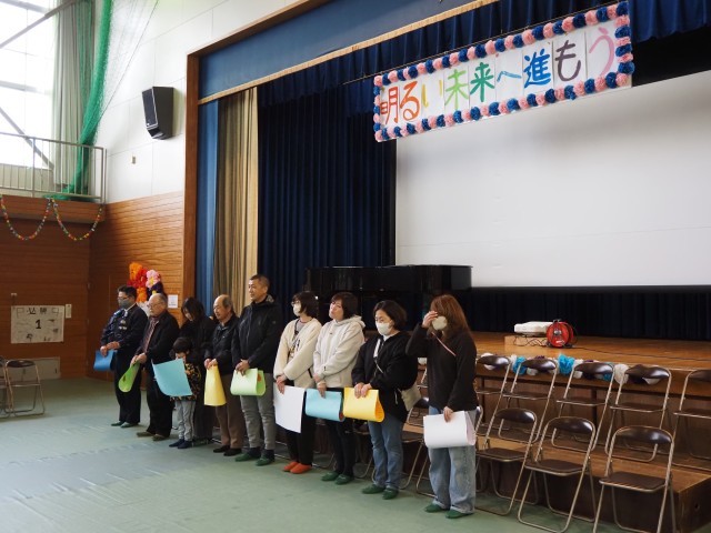 登校時の見守りボランティアの方にお越しいただき子どもたちから感謝を伝える「見守り感謝の会」を行いました。子どもたちにとって登下校時は最も命に関わる危険な時、保護者、地域の皆様のボランティアさんに見守っていただくことで安全な登校ができています。こうした感謝の気持ちを込めて子どもたちからありがとうのメッセージを贈らせていただきました。一年間ありがとうございました。4月以降もどうぞよろしくお願いいたします。