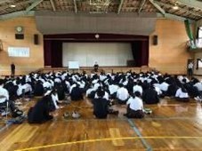 5月26日。校外学習に向けてのマナー講座が行われました。講師の方に、「表情のポイント」や「丁寧な挨拶の仕方」、「言葉遣い」など、社会で気を付けたい様々なマナーについてご講義いただきました。実際に全体でお辞儀を練習し、最後には揃ったお辞儀とキレの良い返事ができていました。来る6月3日の校外学習では、本日学んだ「ニコ・キビ・ハキ」を意識して、社会で働くということについて学んできてくださいね。