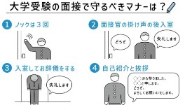 面接では「ノックの数」「礼の仕方」「立ち位置や座り方、姿勢」「話し方」などの所作があります。まずはそういった「技術」を身につけてもらう必要があります。