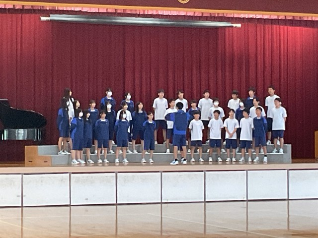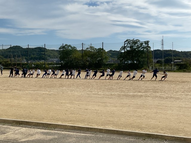 正和祭の練習が本格化してきました。この日は、1年生がグラウンドで招集と個人競技の練習の後音楽室で合唱を、2年生が音楽室と体育館で合唱を、3年生は体育館で招集の確認をし、グラウンドで綱引きの練習をしました。どの学年も時間を有効に使い準備と練習が進んでいます。