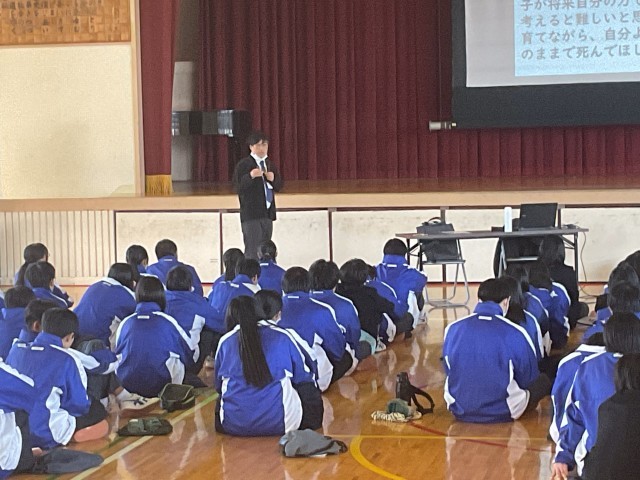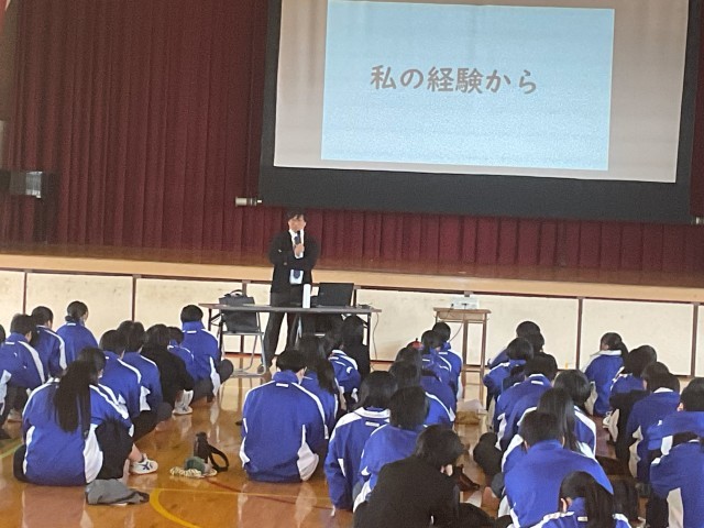講師に三重県人権教育研究協議会の三輪先生をお招きし「SNSから考える人権」~自分を大切に思えていますか~という演題で、人権の歴史から始まり、SNS上での悪口や誹謗中傷の状況、三輪先生自身の経験談を聞かせていただきました。そして、人権とは、生まれながらにしてもっていて、決して奪われてはならない人の生きる力(生きる力=自分は大切な人と思えること)ということを学びました。最後に「一人ひとりにある「」をどう使いますか? 何のために使いますか? 誰のため使いますか?」というメッセージをいただきました。これから自分はどう生きていきたいか。考えてみたいと思います。