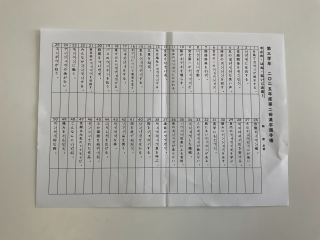 3年生にとっては最後の漢字選手権です。1年生の時から回を重ねるたびに金賞(全問正解)をもらう人が増え続けました。最後の結果はどうでしょうか。たくさん人の名前が呼ばれると良いですね。銀賞の人は22日(月)の昼の放送で、金賞の人は23日(火)の集会で名前が呼ばれ、代表の人が賞状を受け取ります。