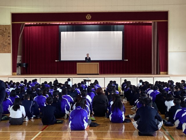 その後の終業式では、校長先生から「人は変わることができる。そのためには自分に負けない強い心と本当の仲間が必要だと思う」という話がありました。生徒指導部の先生からは冬休みの過ごし方について特に注意すべきことについて話がありました。
