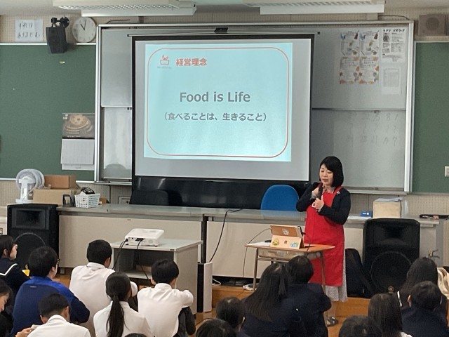 1月19日には、いつも給食でお世話になっているオーケーズデリカ株式会社の杉本さんに来ていただき、「仕事は自分自身を成長させること、そして社会貢献すること」「仕事は人間関係が大事、チームワークだ!」という元気になるお話を聞かせていただきました。