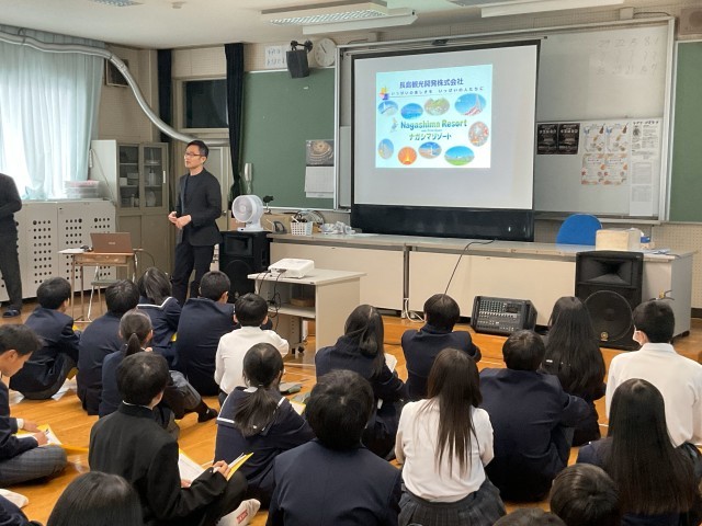 1月26日は、ナガシマリゾートの若林さんに来ていただき、サービス業の「人を喜ばせたい、笑顔にしたい」という言葉や、「報・連・相」の大切さ、そして中学生のみんなに「現在勉強していることにしっかり取り組む。社会に出たら必ず役立つことばかり」というメッセージをいただきました。