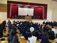 昨年度の卒業生(現高校1年生)に来てもらって「高校生活」や「中学校のうちにしておくべきこと」などについて話を聞かせてもらいました。桑名高校(衛生看護科)、いなべ総合学園高校(総合学科)、川越高校(普通科)、鈴鹿工業高等専門学校(電気電子工学科)からそれぞれ一人、計4人の先輩がパワーポインターを使いプレゼンをしてくれました。先輩の素晴らしいプレゼンに感動するとともに、2年生の生徒にとってはいろいろなことがこれからのことを考える指針になり、いい刺激・勉強になりました。4人の先輩に感謝です。